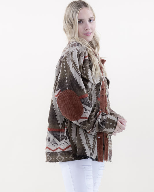 Aztec Shacket w/ Corduroy Elbow Patch