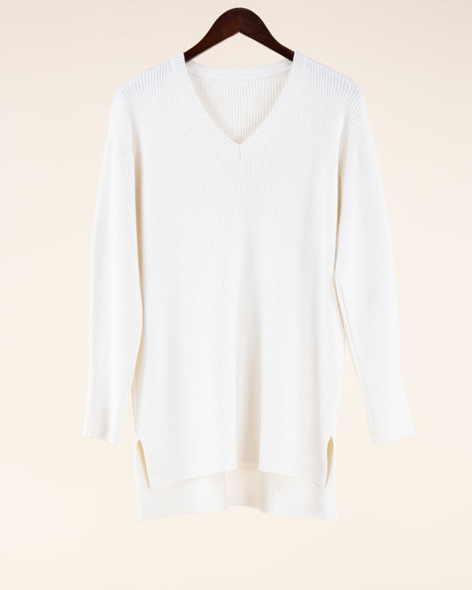 Casual Rib Knit V Neck Long Sleeve Sweater