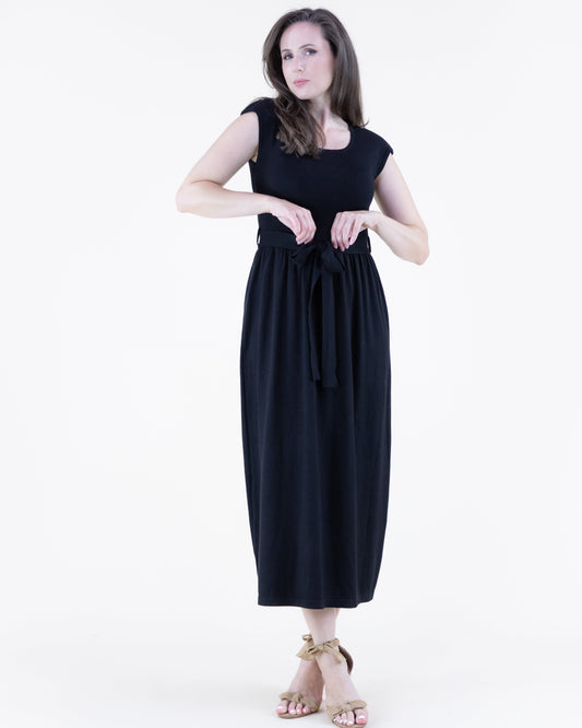 Cap Sleeve Belted Midi Sweater Dress