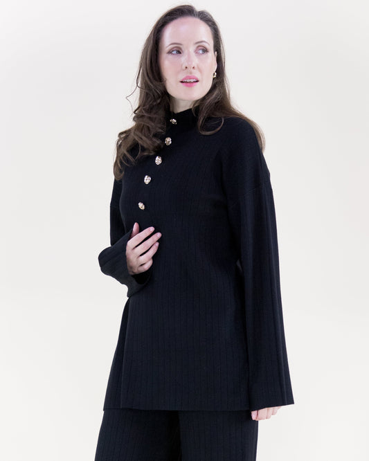 Casual Faux Button Mock Turtle Neck Ribbed Sweater