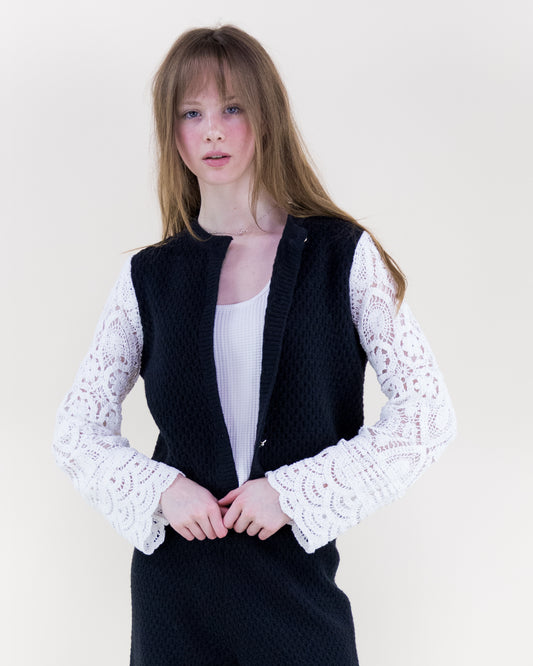 Honeycomb Stitch Crochet Sleeves Boxy Cardigan - S/M, L/XL