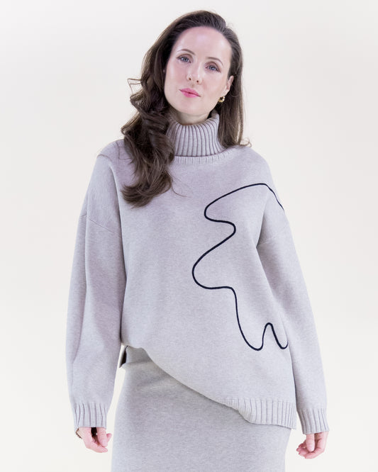 Abstract Outline Turtle Neck Long Sweater