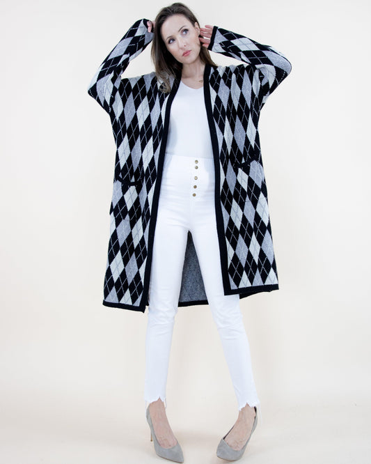 Argyle Pattern Cardigan w/ Pockets