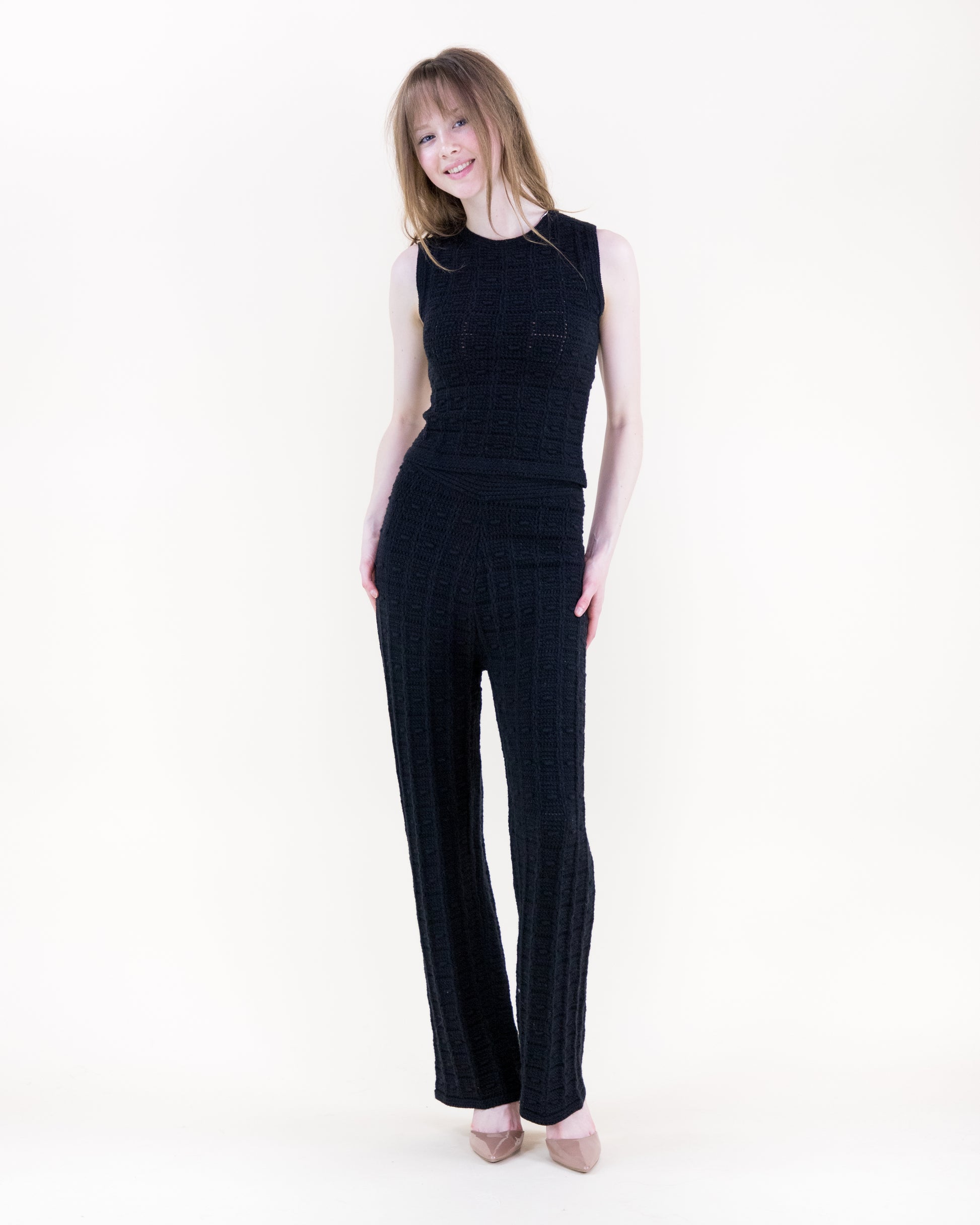 The Andalusian Stitch Knit Pants are designed with a streamlined silhouette that highlights the intricate knit texture while offering comfort and ease. Featuring a clean pull on waistband and a gently flared leg, these pants elongate the figure and provide fluid movement. Crafted to coordinate perfectly with the matching sleeveless top, they complete a sophisticated knit set ideal for elevated everyday wear, travel, or relaxed occasions.